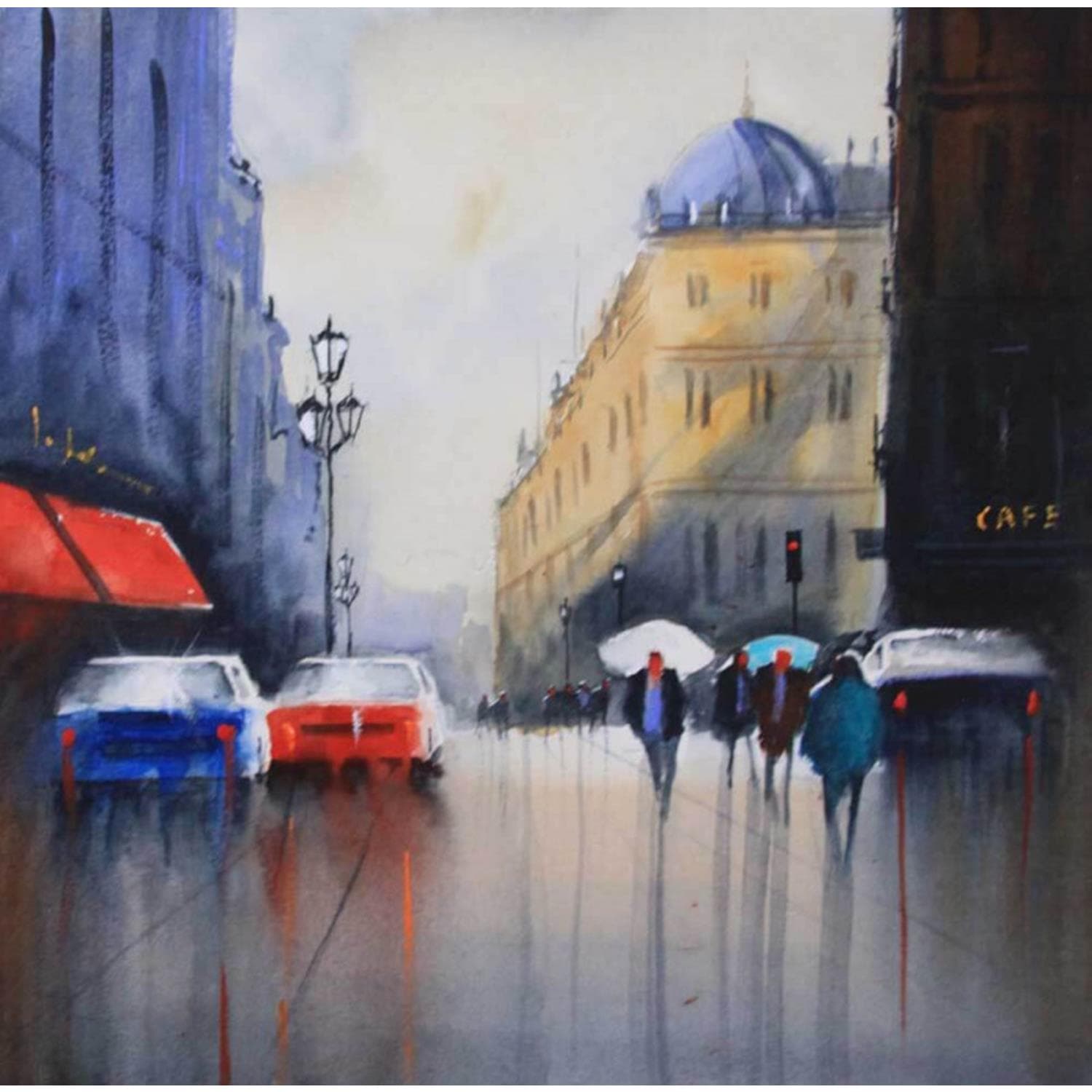 The contemporary artwork Rainy Paris is a modern painting from the artist Jan Min. This is a contemporary painting, unique and originale, Urban style.
