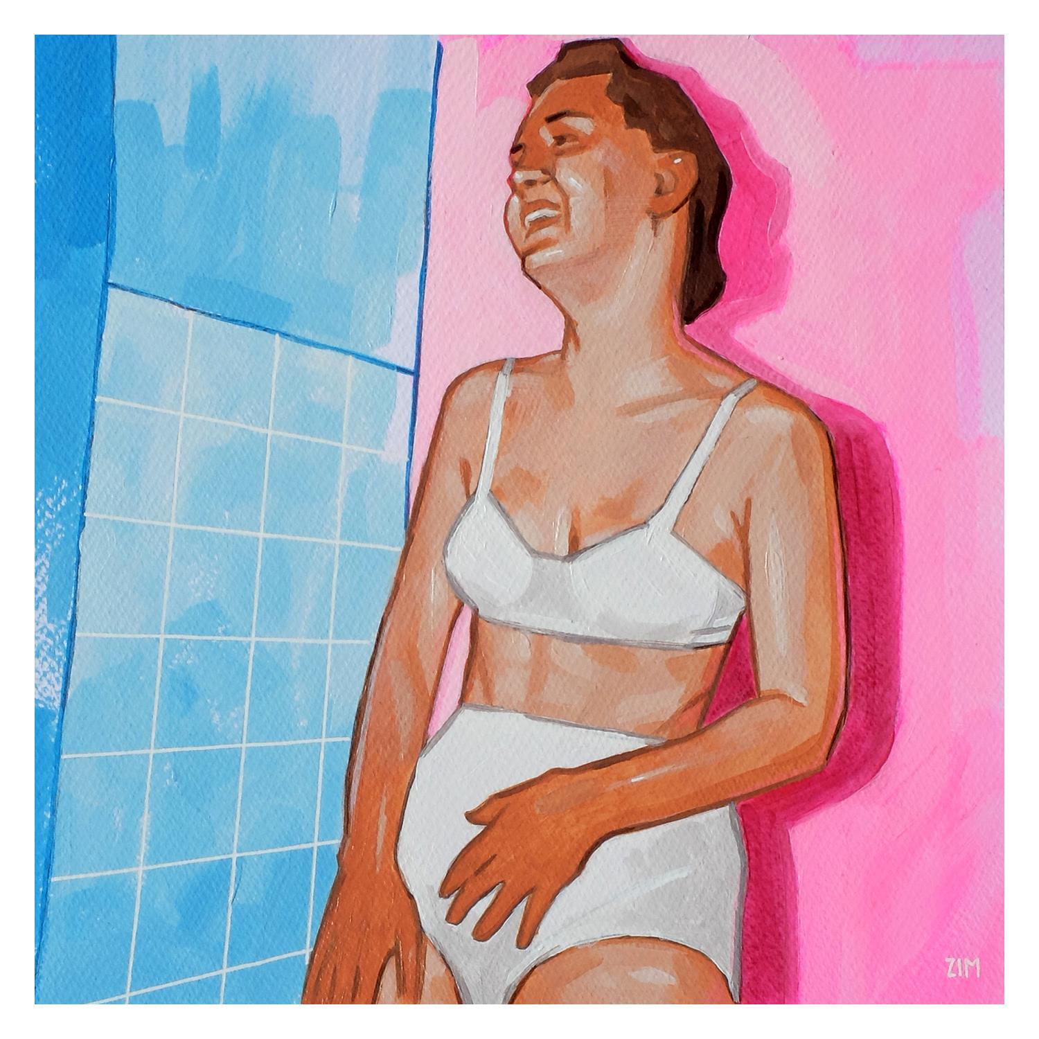This unique and original work of contemporary art “Lingerie” was created by contemporary artist ZIM. The artist used the acrylic technique to create this small format painting on paper in Figurative style.