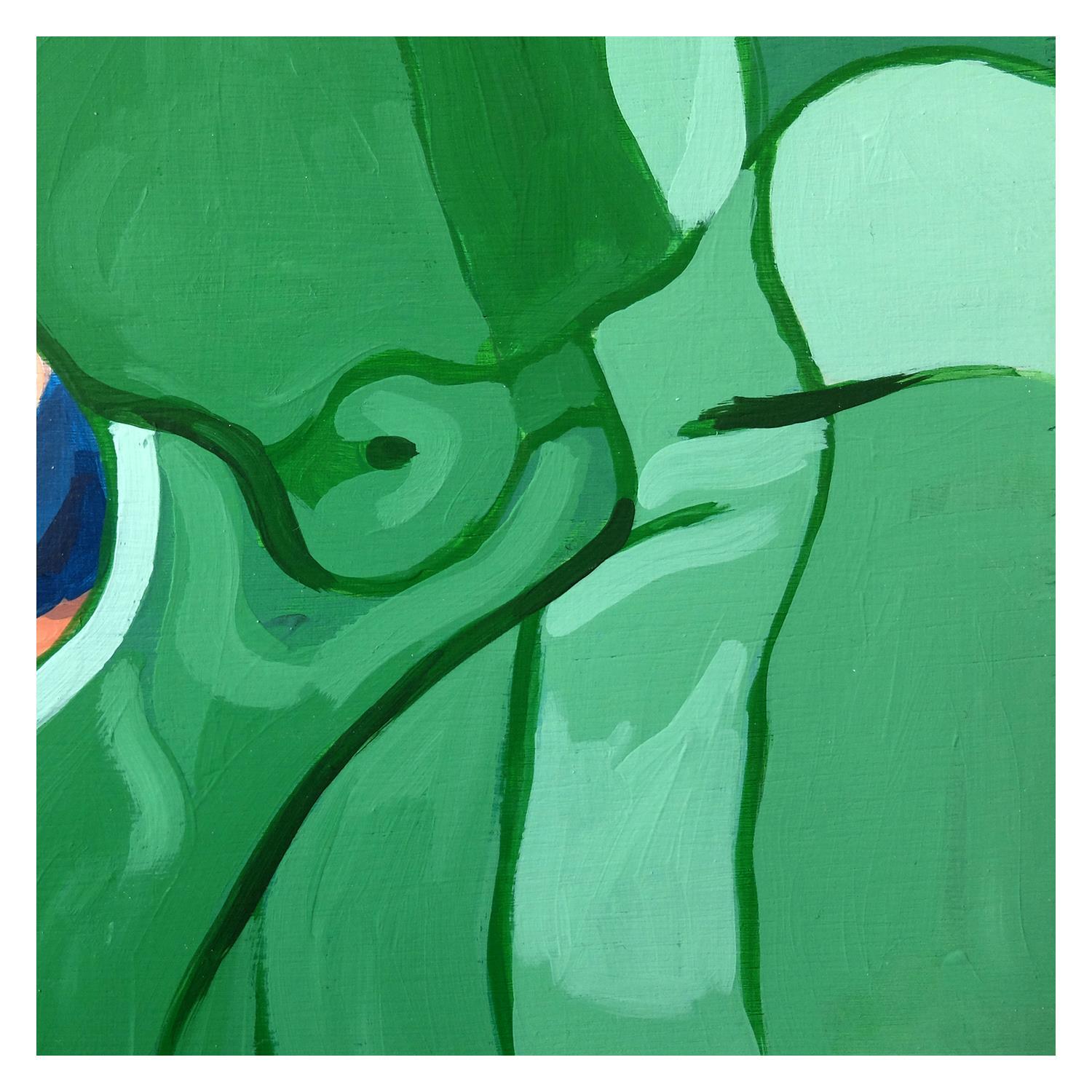 This unique and original work of contemporary art “The green blanket” was created by the contemporary artist ZIM. The artist used the acrylic technique to create this Figurative style painting on wood.