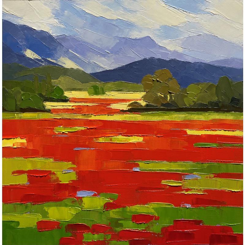 This unique and original contemporary artwork "Plaine aux coquelicots " on the subject of Landscapes has been created by the contemporary artist Clavel Pier-Marion.