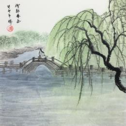This unique and original contemporary artwork "L'ombre du saule sur le pont" on the subjects of Nature, Landscapes, Life style has been created by the contemporary artist Amblard Rui.