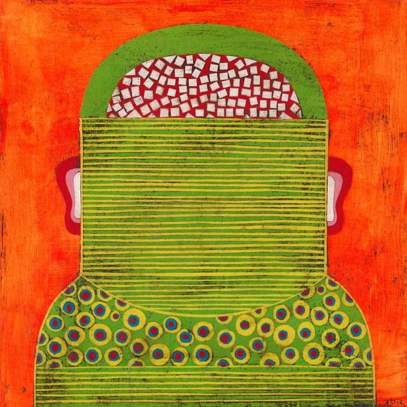 The contemporary artwork Green witness 2 is a modern painting from the artist Gustavo Ortiz. This is a contemporary painting, unique and originale, Figurative style.