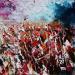 Don Quixote on the Line" depicts the knight-errant riding Rossinante, followed by his faithful squire Sancho Panza. The horizon, high up on the canvas, forms a supporting line for the two figures, who are clearly visible in the background. The main focus is on the foreground: luxuriant vegetation painted with a knife in flat tints and tears of liquid material, giving movement to the motif.