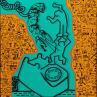 The artist used a variety of techniques to create this small-format Pop art canvas painting on the theme of Pop icons.
