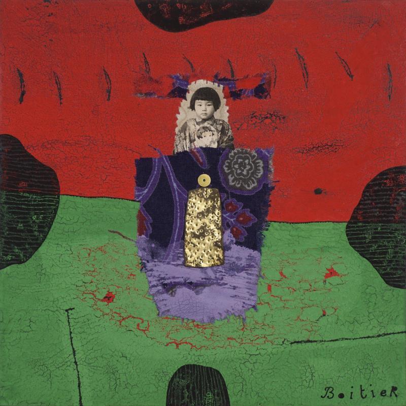 Very early on Thierry was attracted to painting and electronic music. His musical affinities took him into the world of musician Brian Eno, initiator of the "Ambient Music" concept. Discreet music, barely perceptible, designed to encourage and stimulate a quiet space for reflection, "ambient" became his "artistic catalyst". His passion for art led him to study applied graphic and fine arts, and textile design. The first glance at Thierry's paintings is almost inexorably on the photocopied vignettes of human figures found in all of his works. They act like a magnet and capture our attention. They attract us or repel us, but they are the heart of the composition. Stirring up remembrance, he strews improbable fragments of memories about his photographic cameo. These scattered milestones organize to recreate harmony, seeking a possible timeless and universal balance.
