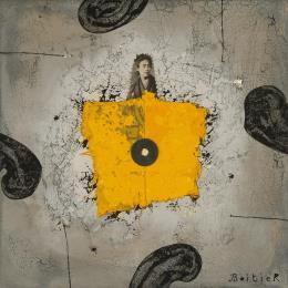 Very early on Thierry was attracted to painting and electronic music. His musical affinities took him into the world of musician Brian Eno, initiator of the "Ambient Music" concept. Discreet music, barely perceptible, designed to encourage and stimulate a quiet space for reflection, "ambient" became his "artistic catalyst". His passion for art led him to study applied graphic and fine arts, and textile design. The first glance at Thierry's paintings is almost inexorably on the photocopied vignettes of human figures found in all of his works. They act like a magnet and capture our attention. They attract us or repel us, but they are the heart of the composition. Stirring up remembrance, he strews improbable fragments of memories about his photographic cameo. These scattered milestones organize to recreate harmony, seeking a possible timeless and universal balance.