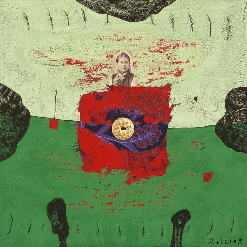Very early on Thierry was attracted to painting and electronic music. His musical affinities took him into the world of musician Brian Eno, initiator of the "Ambient Music" concept. Discreet music, barely perceptible, designed to encourage and stimulate a quiet space for reflection, "ambient" became his "artistic catalyst". His passion for art led him to study applied graphic and fine arts, and textile design. The first glance at Thierry's paintings is almost inexorably on the photocopied vignettes of human figures found in all of his works. They act like a magnet and capture our attention. They attract us or repel us, but they are the heart of the composition. Stirring up remembrance, he strews improbable fragments of memories about his photographic cameo. These scattered milestones organize to recreate harmony, seeking a possible timeless and universal balance.
