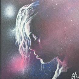 This unique and original contemporary artwork "Pink mist" on the subject of Portrait has been created by the contemporary artist S4m.