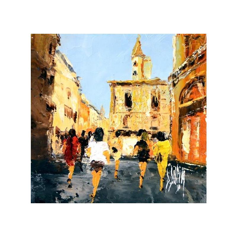 The artist used Oil medium on Canvas to create this Figurative, Small size painting.