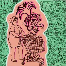 This unique and original contemporary artwork "Petit déjeuner" on the subject of Pop icons has been created by the contemporary artist Belladone.