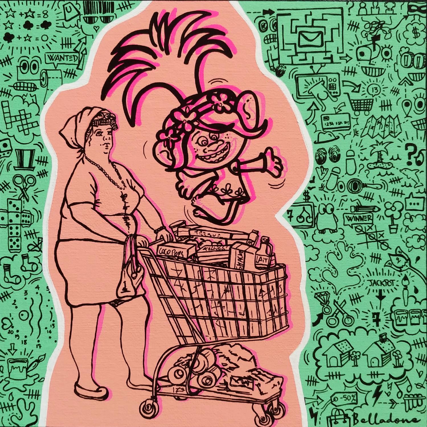 Belladone describes herself as "just a colorful girl". After studying Fine Arts, Art History, Applied Arts, crafts and artistic mediation, the young woman naturally turned to painting, mixing the codes of these different fields to create a multivitamin cocktail.