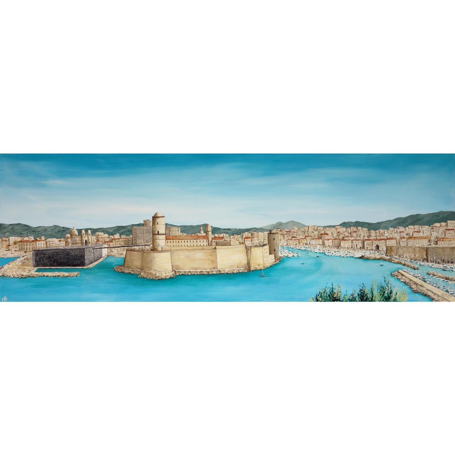 This unique and original contemporary artwork "Panoramique entrée de Marseille" on the subjects of Marine, Landscapes has been created by the contemporary artist Blandin Magali.