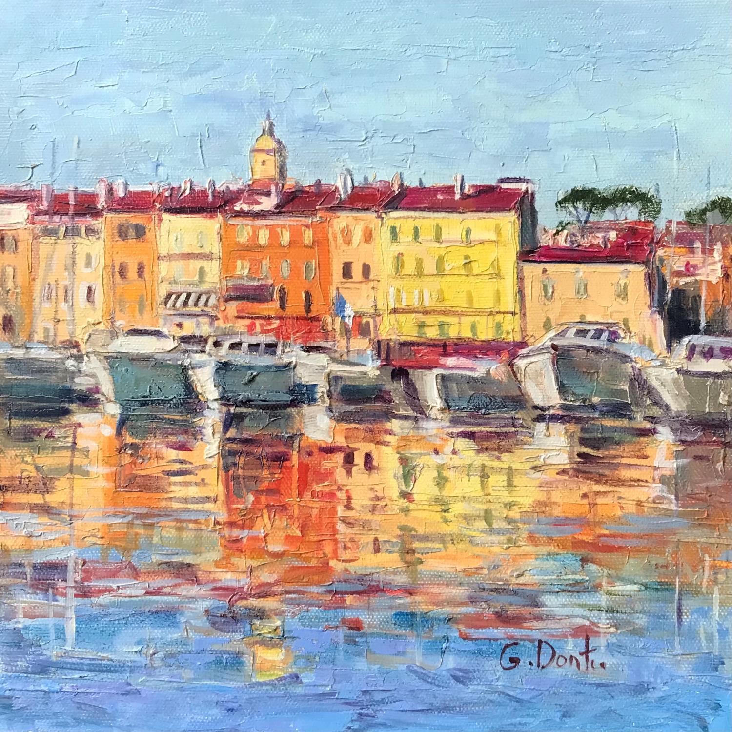 This unique and original contemporary artwork "Saint Tropez le soir" on the subject of Urban has been created by the contemporary artist Dontu Grigore.