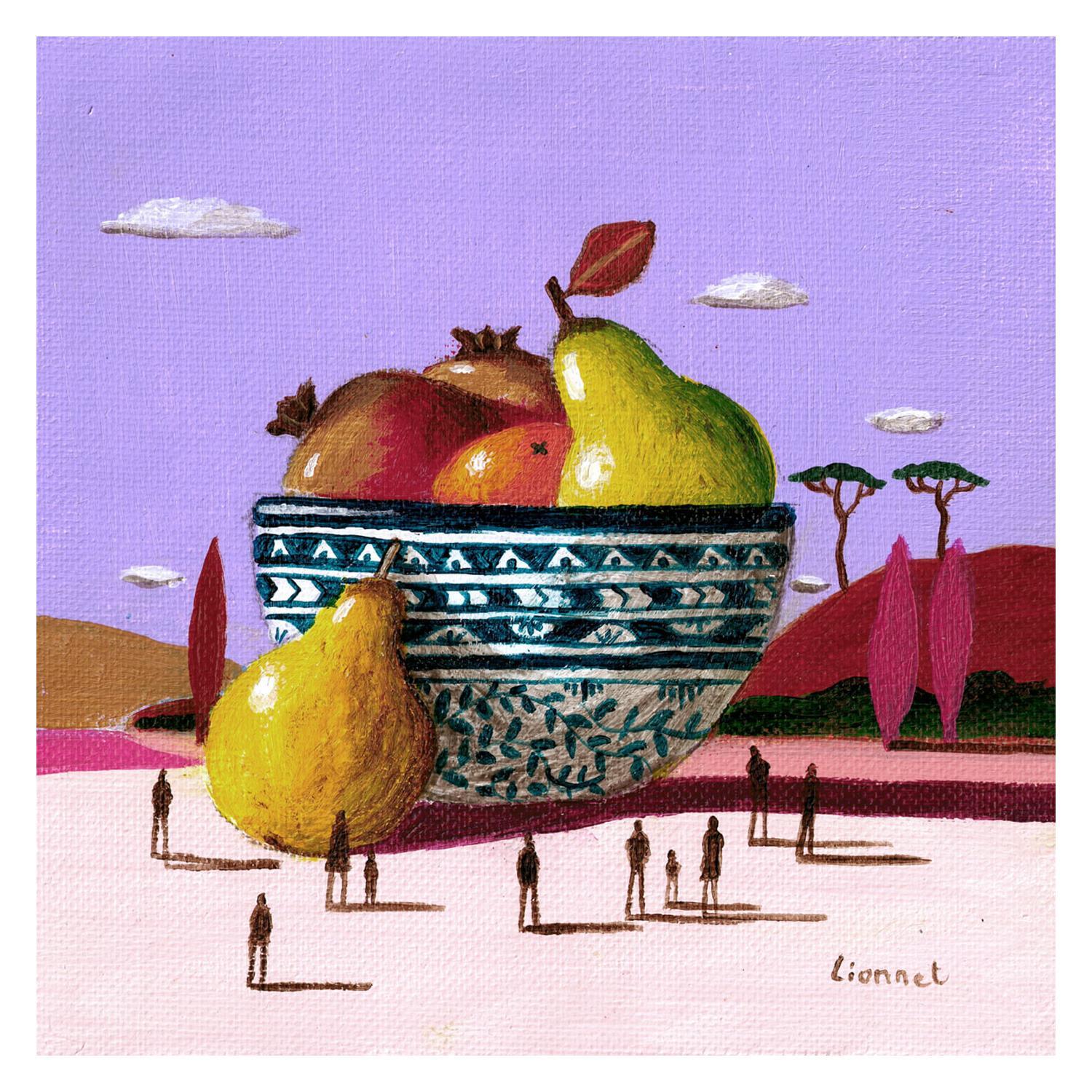 Pintura Fruits d'automne por Lionnet Pascal | Pintura Surrealism Landscapes Life style Still-life Acrylic