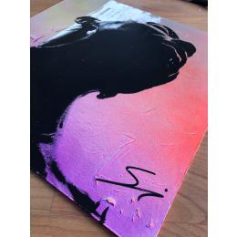 The artist used Graffiti, Acrylic media on Cardboard to create this Pop-art, Small size painting.