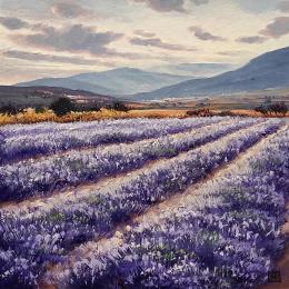 This unique and original contemporary artwork Breathing lavender on the subject of Landscapes has been created by the contemporary artist Requena Elena.