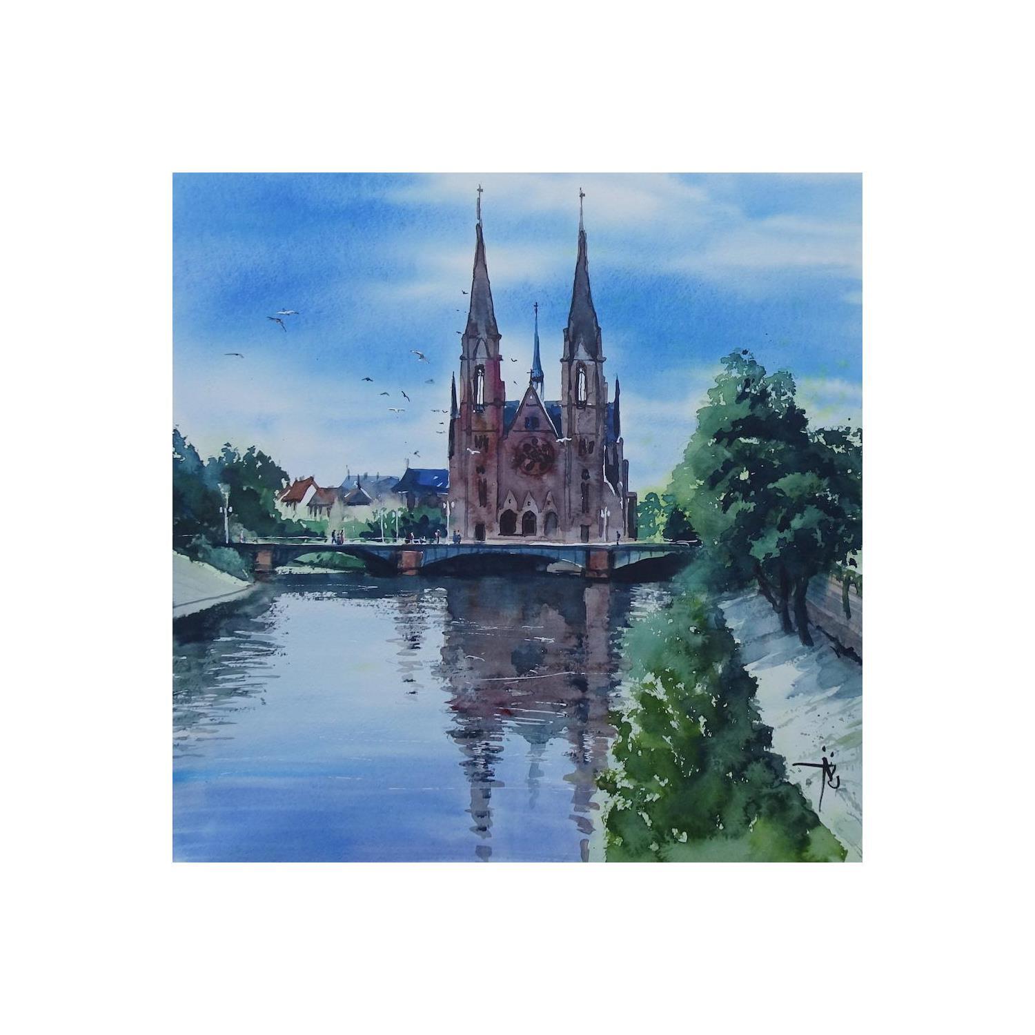 Ce soir, concert en l'église Saint PaulPintura Ce soir, concert en l'église Saint Paul por Abbatucci Violaine | Pintura Figurative Watercolor