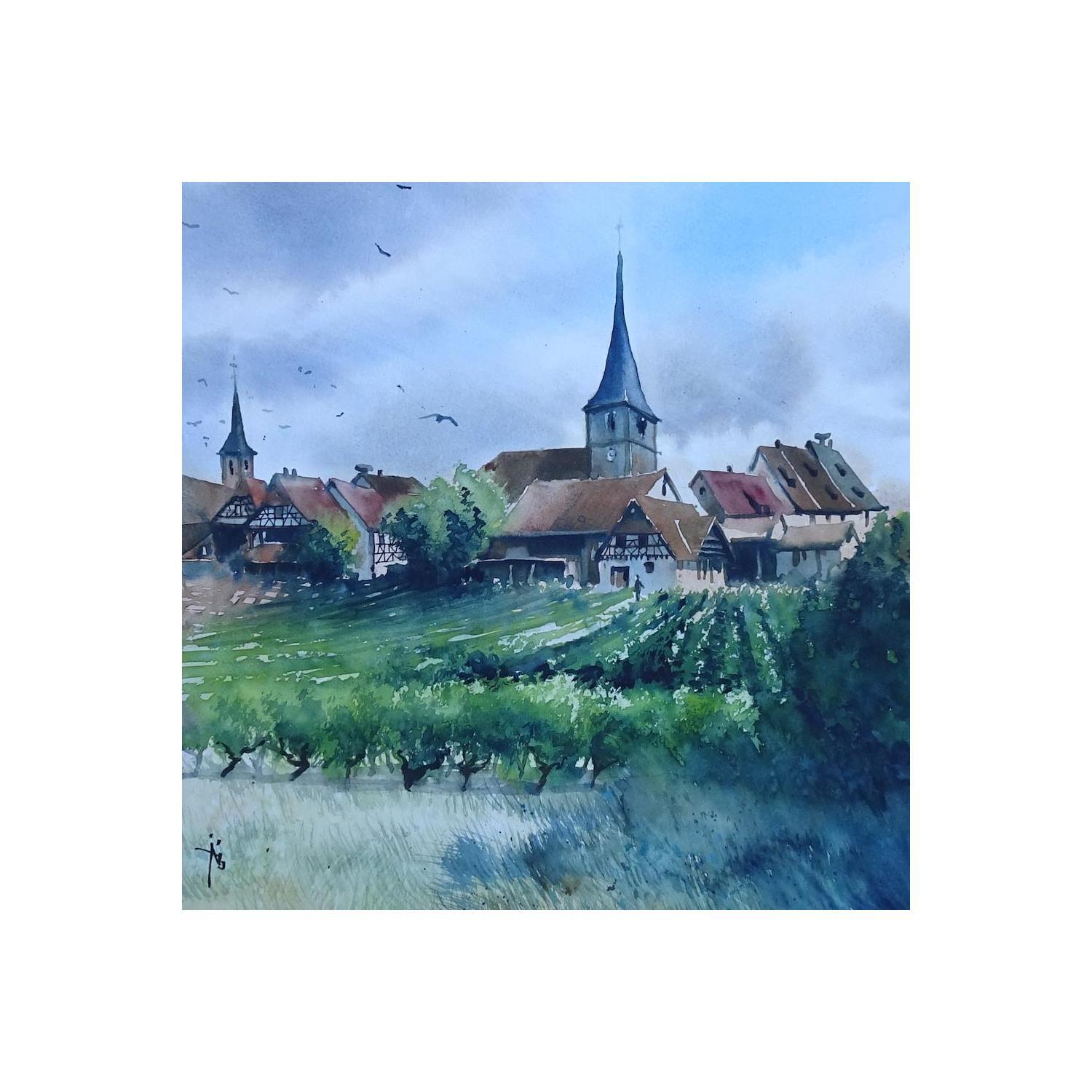 Pintura Au coeur de la Route des Vins por Abbatucci Violaine | Pintura Figurative Watercolor