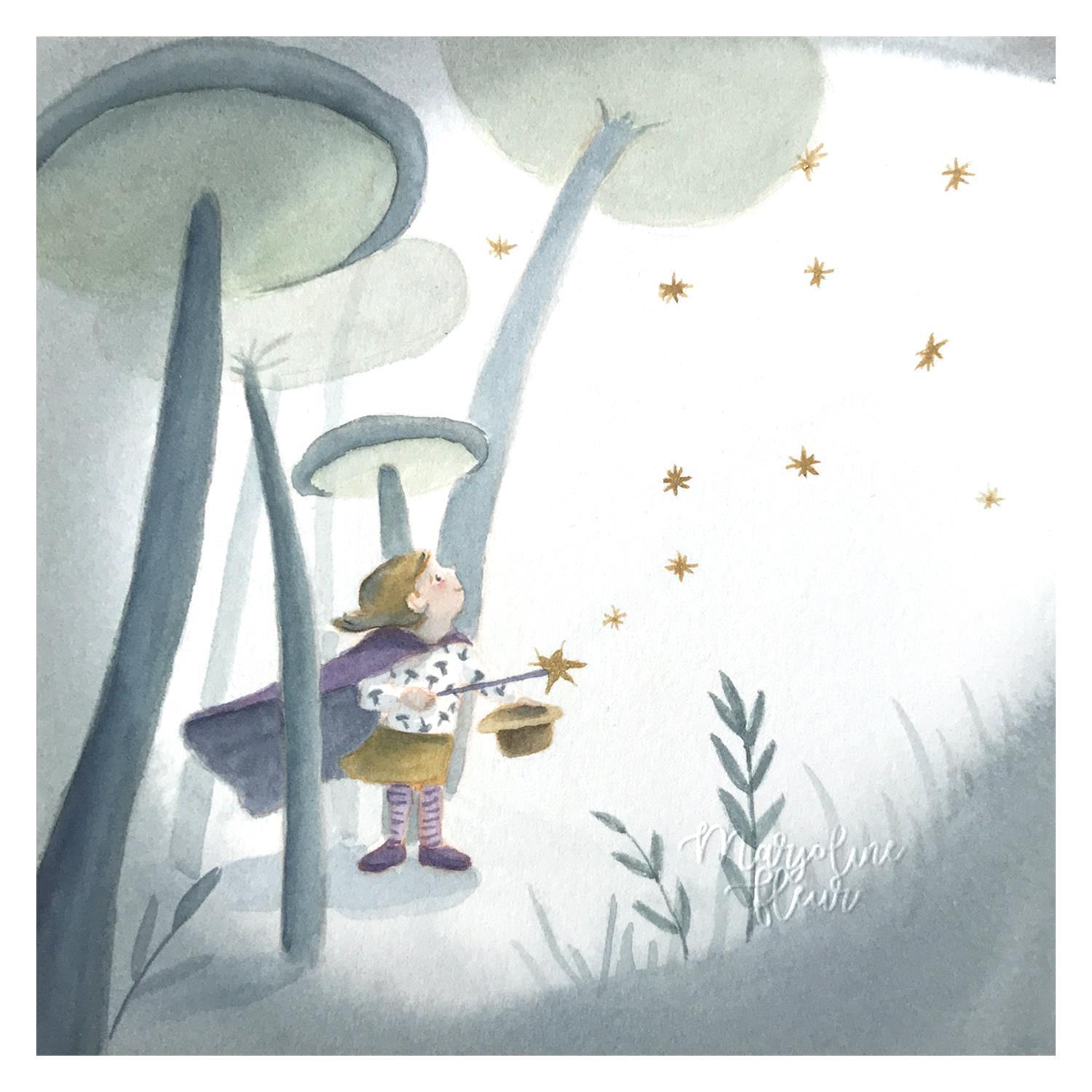 Fleur Marjoline, after studying applied arts and a 12-year career as a textile designer, discovered watercolor at a workshop in 2012. Seduced by this technique, she decided to realize her childhood dream of illustrating children's books, and trained as an illustrator for three years. In 2023, she left her salaried job to devote herself entirely to illustration and watercolor. Fascinated by childhood and the imaginary, her works captivate with their ability to transport the viewer into enchanted worlds.
