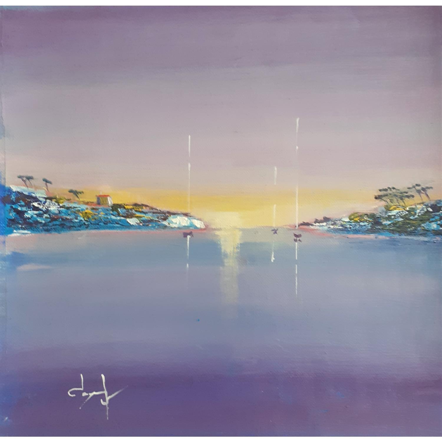 Coucher de soleil sur les calanques méditerranéennesPintura Coucher de soleil sur les calanques méditerranéennes por Degabriel Véronique | Pintura Figurative Landscapes Marine Minimalist Oil