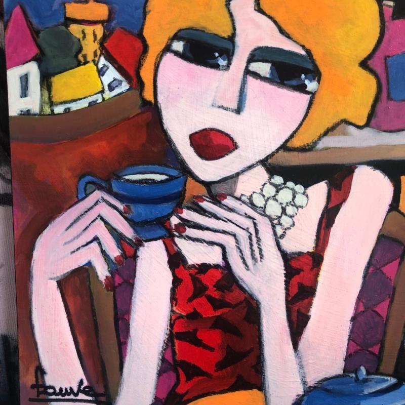 This unique and original contemporary artwork "La tasse de thé " on the subject of Life style has been created by the contemporary artist Fauve.