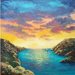 This unique and original contemporary artwork "Coucher de soleil dans les calanques" on the subject of Landscapes has been created by the contemporary artist Blandin Magali.