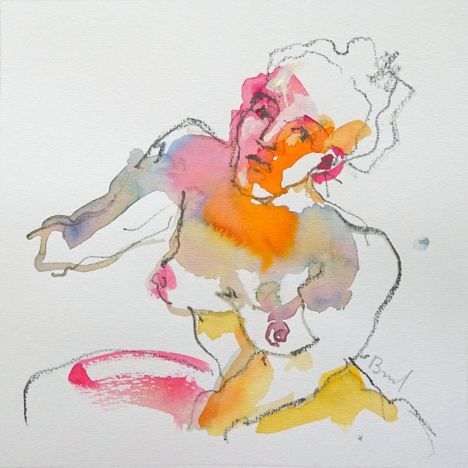 Aurora visage orangePintura Aurora visage orange por Brunel Sébastien | Pintura Figurative Nude Watercolor