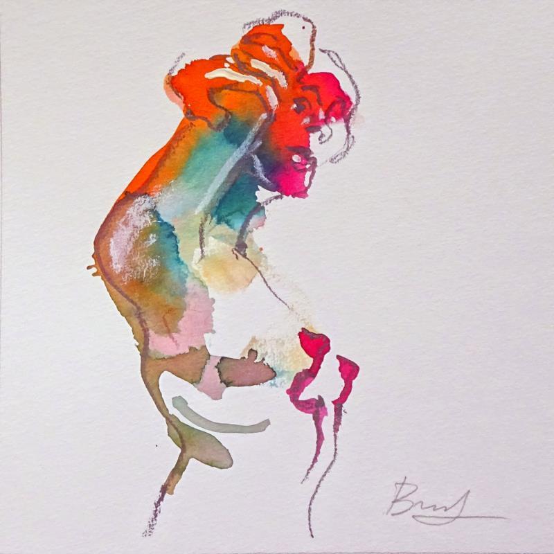 Claire visage rougePintura Claire visage rouge por Brunel Sébastien | Pintura Figurative Nude Watercolor