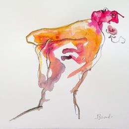 The artist used the watercolor technique to create this small-format painting on paper in the figurative nude style.