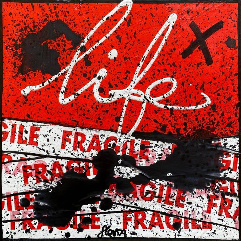This unique and original contemporary artwork "Fragile life (rouge)" on the subject of Society has been created by the contemporary artist Costa Sophie.