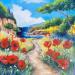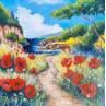 This unique and original contemporary artwork "50x50 - Poppies in the Mediterranean" was created by contemporary artist Sabourin Nathalie.