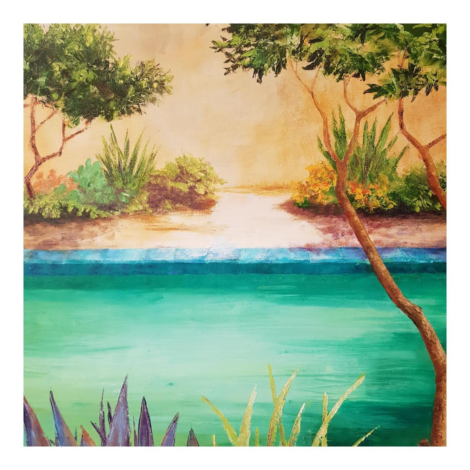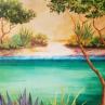 This unique and original contemporary artwork "Le bassin d'émeraude" on the subject of Landscapes has been created by the contemporary artist Bessé Laurelle.