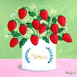 Merci FraisePintura Merci Fraise por Sally B | Pintura Naive art Still-life Acrylic