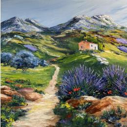 This unique and original contemporary artwork "Mas dans les lavandes" on the subjects of Nature, Landscapes has been created by the contemporary artist Degabriel Véronique.