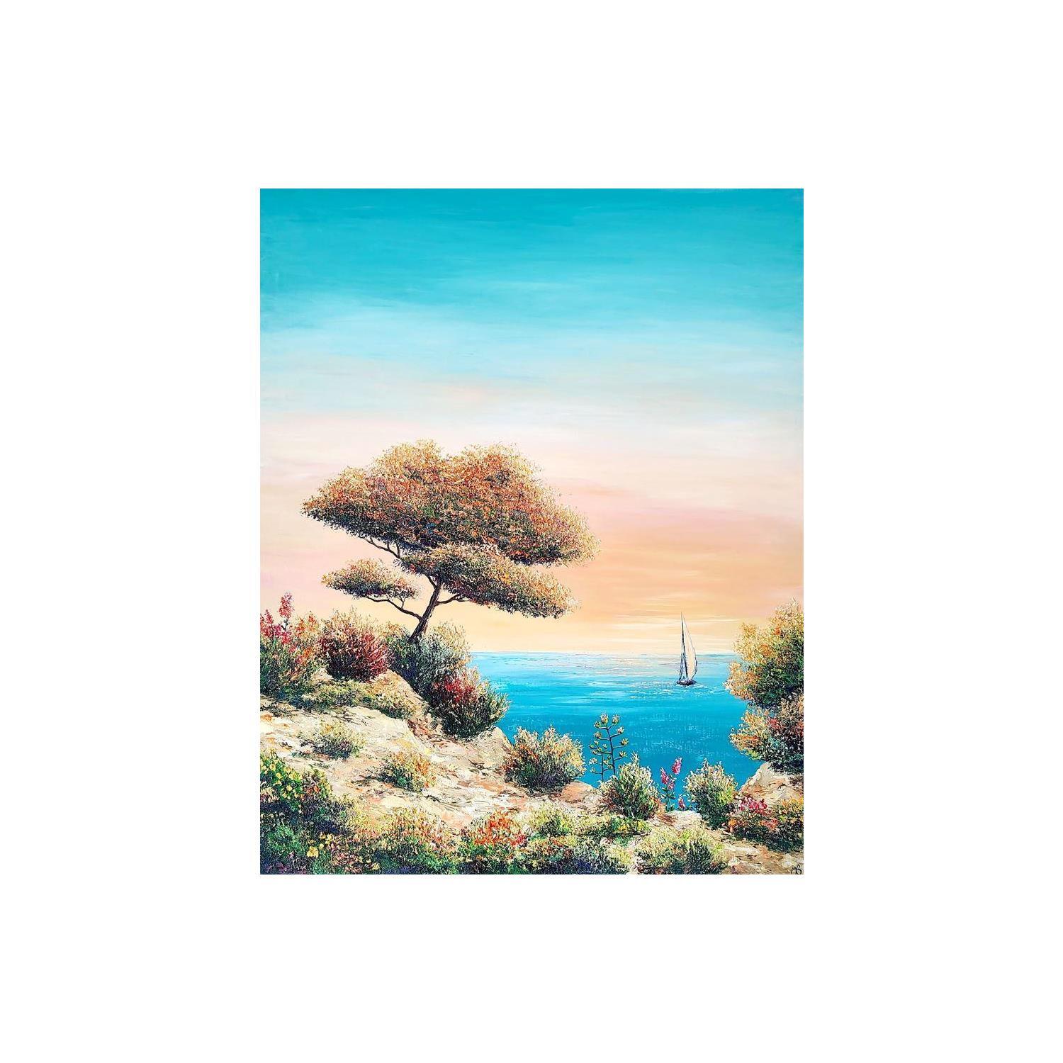 This unique and original contemporary artwork "La crique colorée" on the subject of Landscapes has been created by the contemporary artist Blandin Magali.