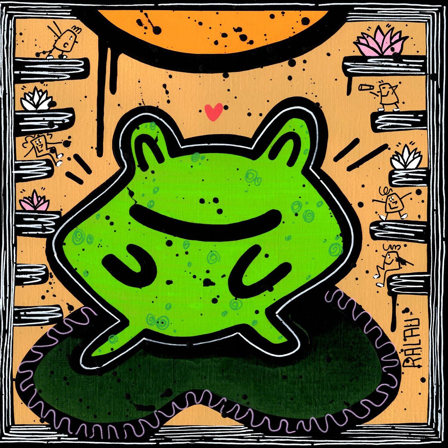 This unique and original contemporary artwork "Froggy frogg" on the subject of Animals has been created by the contemporary artist Ralau.