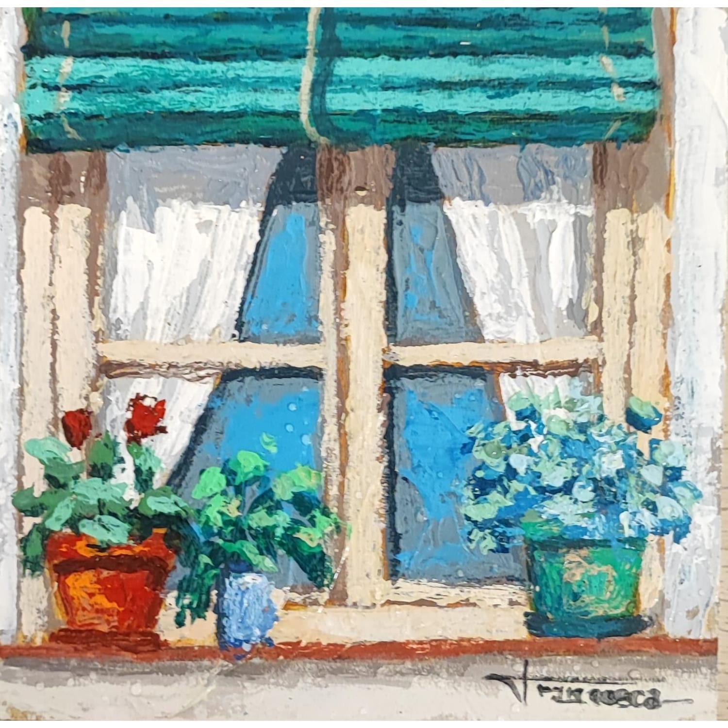 This unique and original contemporary artwork "FLORES EN LA VENTANA" on the subject of Urban has been created by the contemporary artist Escobar Francesca.