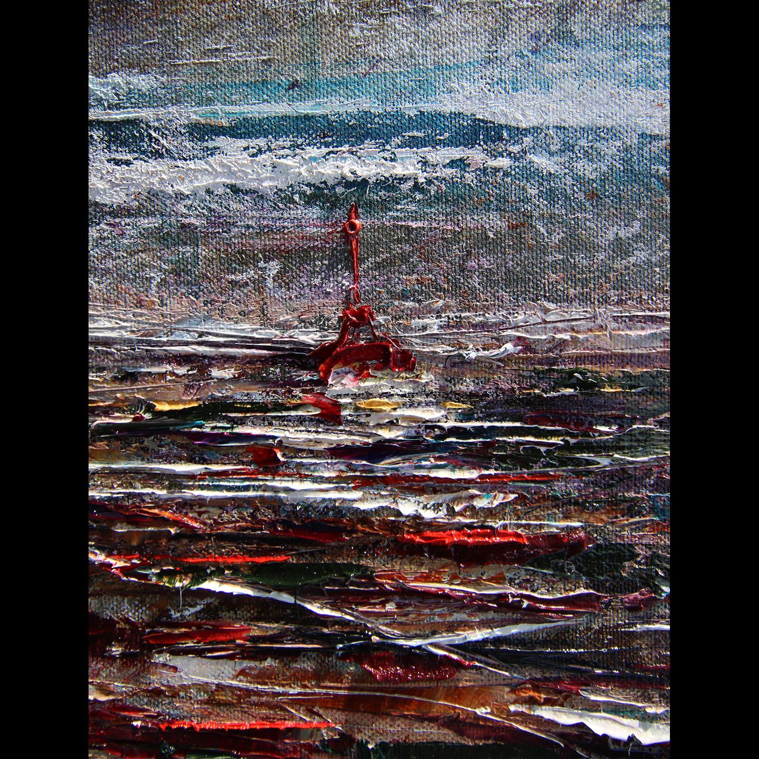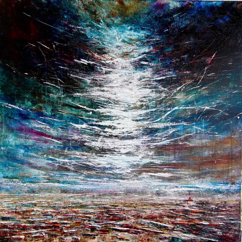 Paris" represents the city in a metaphorical, non-figurative way. She chooses an overhanging vantage point to highlight the capital's rooftops, whose reliefs and ridges create an undulating, almost maritime movement, accentuated by the liquidity of the paint. The motif is painted in oil and palette knife, playing on oppositions between warm (shades of red) and cool (shades of blue and green) colors. The proportions of the painting, two-thirds of which is dominated by the sky, are designed to accentuate the perspective and majesty of the motif. The sky, moreover, echoes the opposition between cold (left) and warm (right) hues, the two masses being linked by the stringy, torn clouds that give depth to the space.