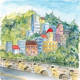 Vue banlieuePintura Vue banlieue por Balme Delphine | Pintura Figurative Landscapes Watercolor