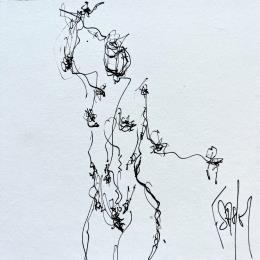 The artist used pen-and-ink and nacre techniques to create this small-format painting on paper in a figurative style on the themes of Minimalist and Nude.