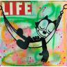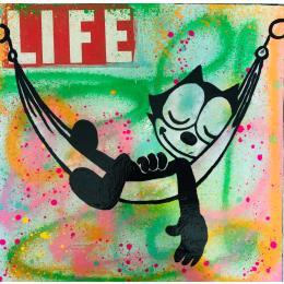 This unique and original contemporary artwork "Felix chill" on the subject of Pop icons has been created by the contemporary artist Kikayou.