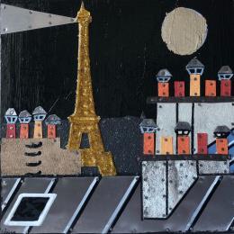 Pintura Quand vient la nuit ! por Lovisa | Pintura Figurative Urban Acrylic Gluing Posca Silver leaf Upcycling