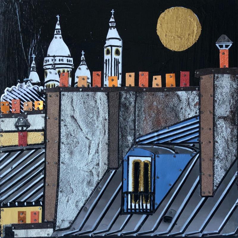 Bons baisers de la buttePintura Bons baisers de la butte por Lovisa | Pintura Figurative Urban Acrylic Gluing Posca Gold leaf Upcycling