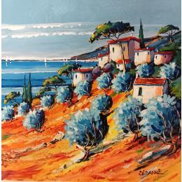 This unique and original contemporary artwork "Les oliviers à Bormes-les-Mimosas" on the subject of Landscapes has been created by the contemporary artist Cédanne.