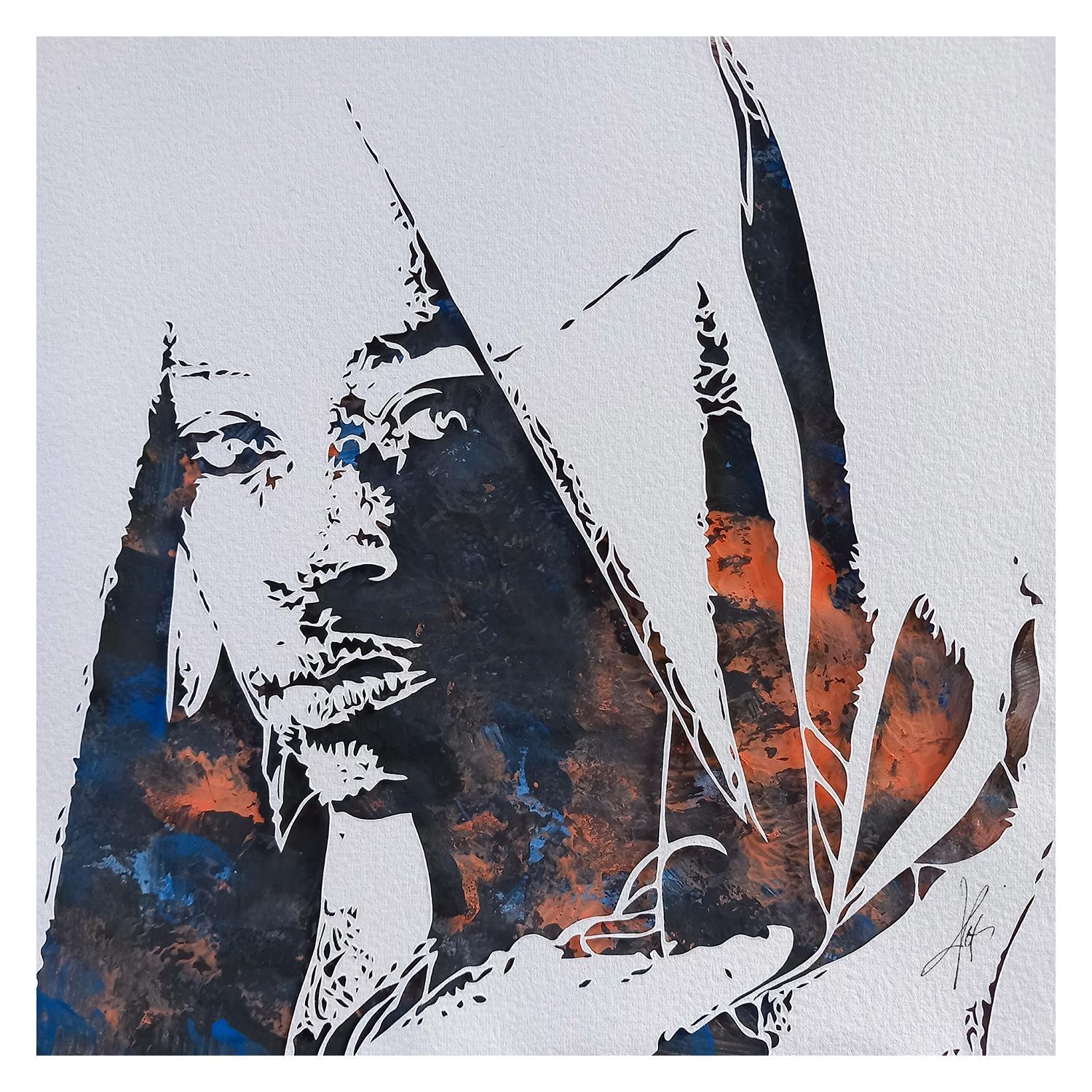 The artist used the paper-cut technique to create this small-format work on Figurative Paper on the theme of Portraits.