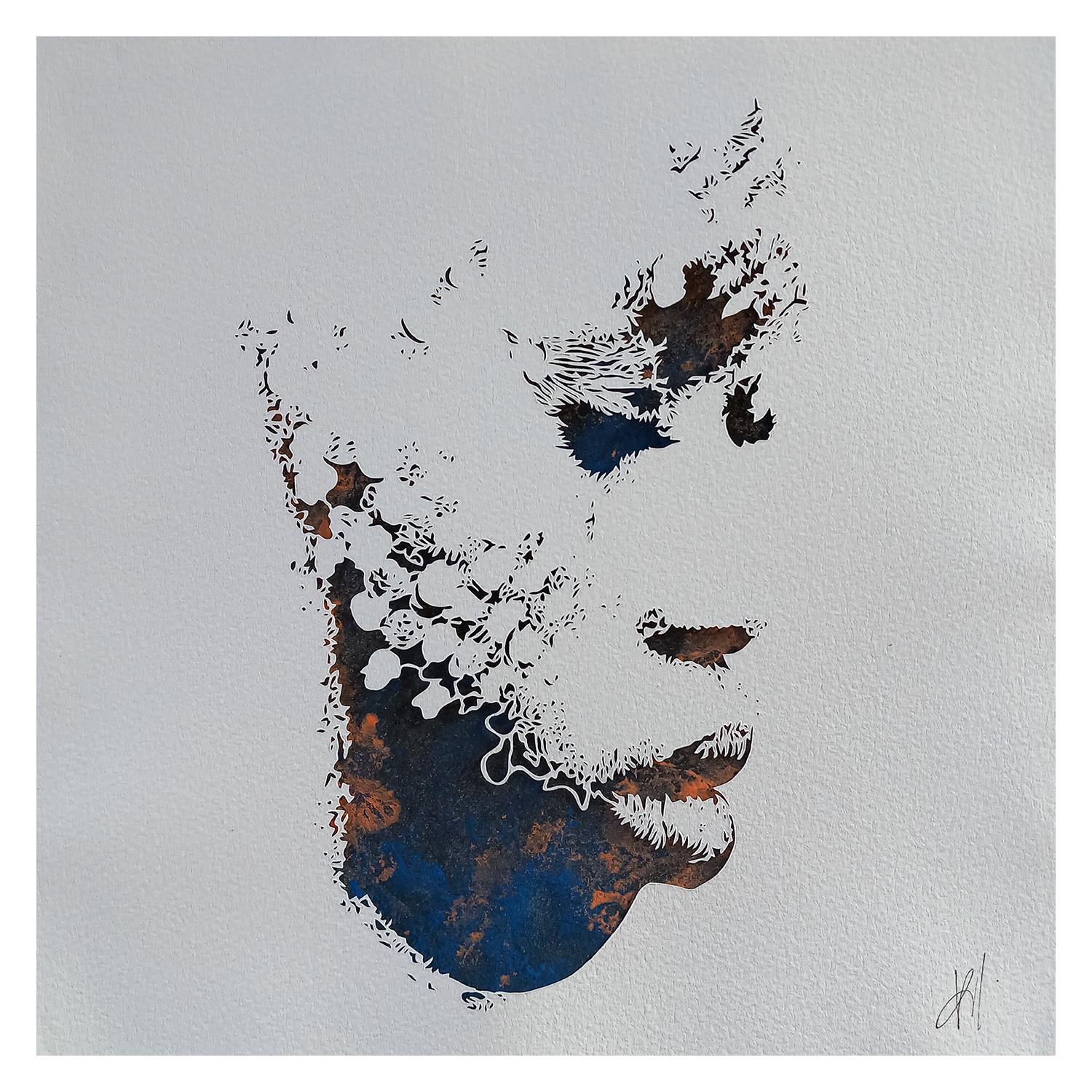 The artist used the paper-cut technique to create this small-format work on Figurative Paper on the theme of Portraits.