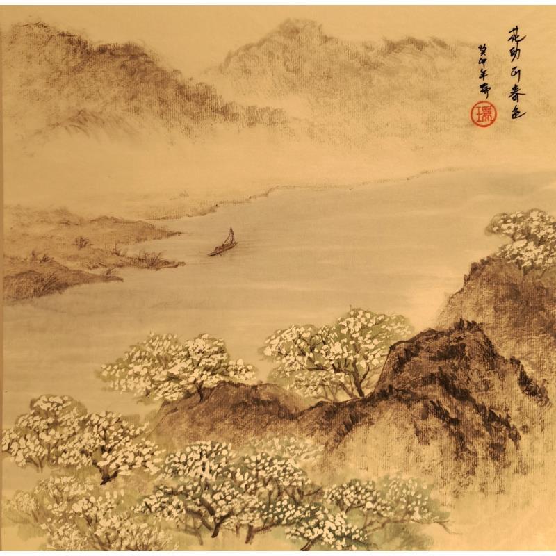 This unique and original contemporary artwork "Navigation de plaisance sur le rivière Spring" on the subject of Landscapes has been created by the contemporary artist Amblard Rui.