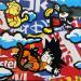 The artist used Gluing, Graffiti, Posca media on Canvas to create this Pop-art, Small size painting.