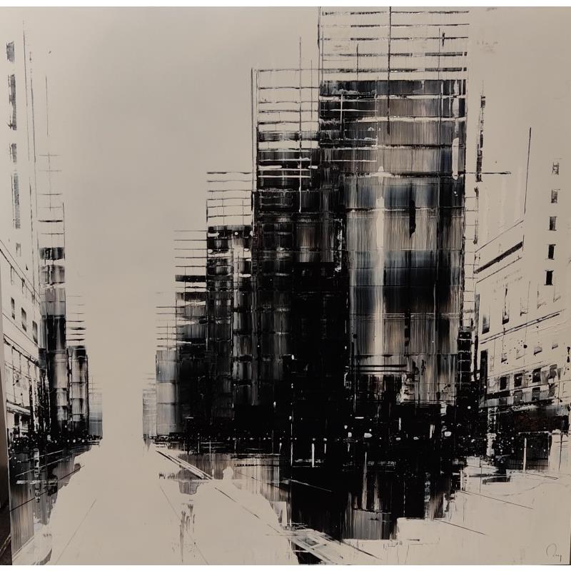 Although he has achromatopsia (absence of color vision), Julien Rey takes us on a journey through his paintings to urban landscapes. Julien Rey's story begins like all great stories: with an impossible dream. With achromatopsia, the artist sees only in black and white. Yet, this condition did not prevent him from traveling to the borders of Burma, from changing his life (he became a Buddhist monk there) or from embarking on art. From his trip to Burma, he brought back a perfect mastery of gold leaf, a characteristic element of his work. His technique based on lacquer worked with a knife and gold leaf inlays places light at the center of his works. Marked by Zen philosophy, he creates minimal compositions that appear as suspended moments, poetic pauses.