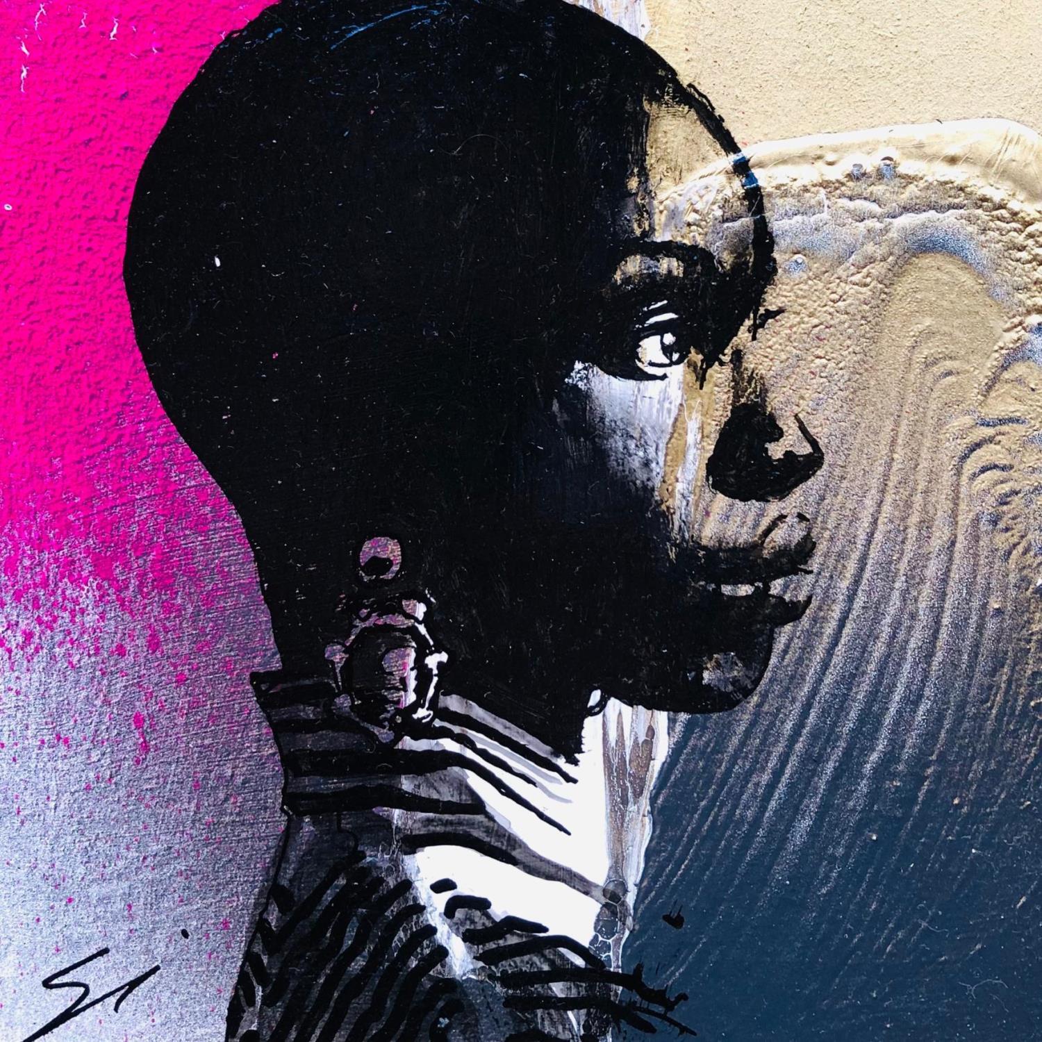 This unique and original contemporary artwork "BLACK BEAUTY" on the subject of Pop icons has been created by the contemporary artist Mestres Sergi.